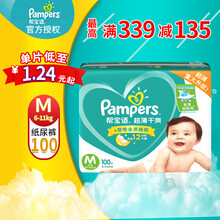 帮宝适绿帮纸尿裤M100片(6-11kg)中码超薄干爽婴儿尿不湿 纸尿裤-M100片-6-11kg-低至1.24/片