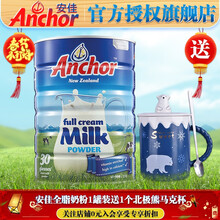 安佳(Anchor)新西兰原装进口儿童青少年学生成人男士女士中老年高钙全脂脱脂调制乳粉袋装罐装组合装 安佳全脂1罐装+1个北极熊马克杯