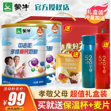 蒙牛奶粉 中老年多维高钙成人奶粉800g*2罐装 无蔗糖添加 老人营养牛奶粉 送礼乐享礼盒装 2罐【礼盒装送保温杯+麦片】