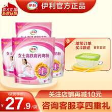 伊利奶粉 女士高铁高钙奶粉400g袋装 青少年女性女学生奶粉成人 含叶酸营养早餐牛奶粉 独立小袋装 400g*4袋装