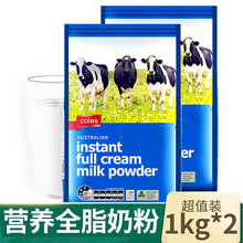 【直营】澳洲进口coles全脂成人奶粉青少年老人补钙早餐奶粉1000g*2 两袋装