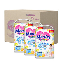 花王(Merries)妙而舒婴儿学步裤 日本原装进口拉拉裤 大号L44片(9-14kg)箱装3包