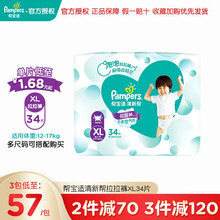帮宝适清新帮拉拉裤 泡泡型纸尿裤 夏日多规格超薄柔软透气干爽学步裤 多尺码婴儿尿不湿男女宝宝通用 清新帮宝适拉拉裤XL34片