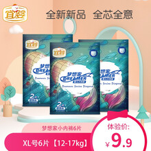 宜婴 梦想家婴儿纸尿裤试用装亲肤超薄透气宝宝尿不湿拉拉裤便携装 拉拉裤XL码6片【12-17kg】