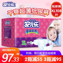 安儿乐(ANERLE) 纸尿裤/拉拉裤/弹力裤/学步裤干爽超薄透气宝宝尿布安尔乐婴儿尿不湿 XL108片-纸尿裤