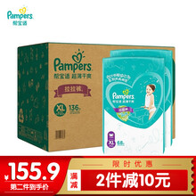 帮宝适 拉拉裤 绿帮小内裤式尿不湿 裤型纸尿裤 XL136片 加大号