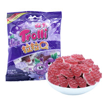 口力Trolli 糖果 水果橡皮糖 草莓味 葡萄味果汁软糖 拉链封口袋 口力粒粒Q葡萄味60g