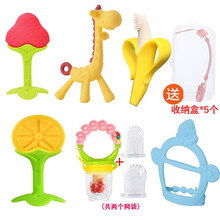曼哈顿球牙胶婴儿磨牙棒宝宝吃水果蔬咬咬乐香蕉长颈鹿牙咬胶硅胶玩具食物辅食器奶嘴 橙子+咬咬乐+香蕉+草莓+小鹿+防吃手+盒+链子
