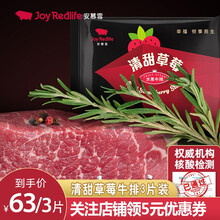 【拍3片63元 6片126元 9片189元】安慕雪原切牛排新鲜牛排微调水果牛排健身人士常备 清甜草莓125g*3片