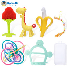 马博士(DOCTOR)牙胶婴儿磨牙棒宝宝吃水果咬咬乐咬咬袋长颈鹿牙咬胶硅胶玩具食物辅食器安抚 小鹿+香蕉+草莓+戒吃手环+手抓球 5件套