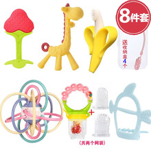 曼哈顿球牙胶婴儿磨牙棒宝宝吃水果蔬咬咬乐香蕉长颈鹿牙咬胶硅胶玩具食物辅食器奶嘴 手抓球+咬咬乐+香蕉+草莓+小鹿+防吃手+盒+链子