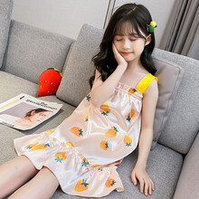 BESWOO女童睡裙2021女孩子儿童睡衣冰丝薄款夏季家居服时尚水果吊带睡裙夏天空调服 黄草莓 140(适合130-140CM穿着)