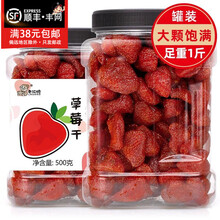 草莓干即食果脯蜜饯Q软酸甜草莓果脯 酥脆草莓脆雪花酥、牛扎糖烘培材料零食原味水果肉干 500克罐装*1【果脯草莓】