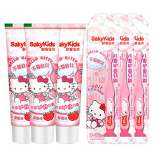 舒客儿童护齿牙膏60g3支+牙刷3支低氟换牙期防宝宝蛀水果味牙膏2-6-12岁通用 草莓3盒+牙刷3