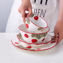 川岛屋草莓陶瓷餐具碗碟家用可爱创意水果碗沙拉碗面碗汤碗饭碗菜盘牛排盘 勺子(两只装)