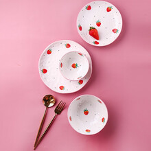 川岛屋可爱草莓餐具少女网红餐盘陶瓷吃饭碗沙拉碗大号水果碗麦片碗甜品碗早餐碗 斜边汤碗