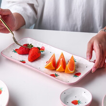 川岛屋可爱草莓餐具少女网红餐盘陶瓷吃饭碗沙拉碗大号水果碗麦片碗甜品碗早餐碗 10.5寸寿司盘
