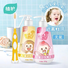 植护儿童宝宝牙膏牙刷 木糖醇水果味按压式2-6-12岁 安全防蛀 无氟可吞咽 草莓牙膏味1瓶