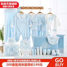 婴儿礼盒新生儿衣服春秋夏季保暖纯棉无骨缝制满月礼物宝宝衣服0-3-6个月保暖礼盒套装 四季蓝2011款【4套衣服】 66码【适合4-7月宝宝】无骨缝制