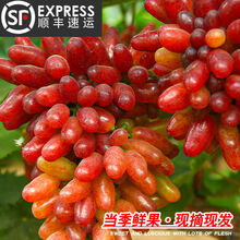 顺丰发货金手指红宝石葡萄新鲜无籽美人指提子蓝宝石换代葡萄水果 3斤泡沫箱装