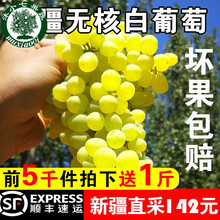 【顺丰-无核葡萄】新疆葡萄 无核白葡萄 新鲜吐鲁番白孕妇当季水果马奶子无籽青提子5斤 2500g 4-5人家人尝鲜 无籽白葡萄