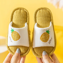 梵蔚可爱水果儿童拖鞋小孩宝宝男童女童亚麻棉布凉拖鞋婴儿幼儿小童防滑居家室内地板家居鞋春秋拖鞋夏季四季 菠萝黄色 230内长21.5cm