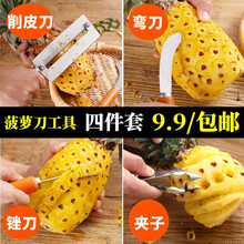 东之天地 家用菠萝刀凤梨刀削皮器不锈钢去眼夹菠萝器挖籽锉刀水果削皮去皮器DIY工具 削皮去籽四件套