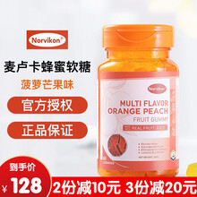 【2份减10元,3份减20元】诺维康麦卢卡蜂蜜软糖,新西兰原装进口,香橙蜜桃味/菠萝芒果味,真果汁浓缩,好口感无负担。