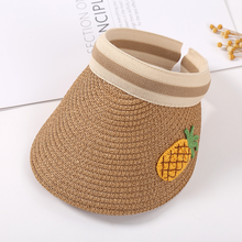 HOCR-帽子男女童可爱草帽春夏新款韩版潮流可爱水果空顶帽儿童休闲防晒遮阳简约太阳帽 菠萝-卡其色空顶帽