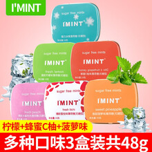 imint无糖薄荷糖益美滋老式铁盒装清新口气糖网红约会接吻香体糖清凉润喉水果味含片糖亲嘴糖kiss 【3盒装】柠檬+蜂蜜C柚+菠萝味