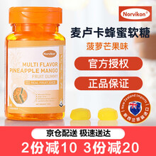 诺维康麦卢卡蜂蜜软糖新西兰Norvikon软糖原装进口软糖香橙味水果口味糖果 菠萝芒果味1瓶【60粒】