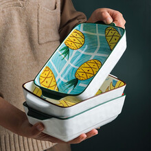 舍里芝士焗饭盘家用陶瓷烤盘水果系列创意家用微波炉长方形双耳盘子 菠萝