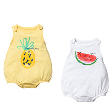 婴儿衣服夏季薄款0-1岁新生儿连体衣纯棉哈衣3个月女宝宝夏装无袖爬服背心三角包屁衣男超薄满月大红 水果菠萝+清凉西瓜 73CM(建议体重11~15斤)