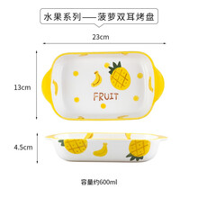 悠家良品(UPSTYLE)日式创意盘子芝士焗饭烤盘清新水果单柄盘长方形双耳烘焙餐盘饺子盘面盘家用餐具 菠萝【双耳盘】