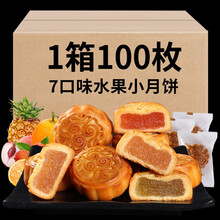 100枚水果月饼中秋点心糕点零食广式独立包装小月饼水果馅荔枝香橙凤梨草莓芒果水蜜桃哈密瓜 7味混合250g*2袋(约20枚)