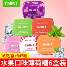 imint无糖薄荷糖益美滋老式铁盒装清新口气糖网红约会接吻香体糖清凉润喉水果味含片糖亲嘴糖kiss 【6盒装】葡萄+菠萝+荔枝+蜜桃+C柚+柠檬