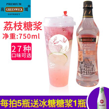 高域荔枝果露糖浆 蓝柑薄荷草莓香草蓝莓风味香蜜气泡苏打水果汁鸡尾酒饮料果露奶茶店专用原材料750ml 荔枝味