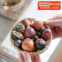 宜兴紫砂茶宠摆件仿真水果蔬菜柿子石榴荔枝山竹手工茶玩茶道配件 紫砂果蔬十全一盘