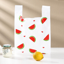 可爱水果凤梨打包塑料袋 通用网红菠萝山竹牛油果图案外卖背心袋快餐外卖袋水果店商用饰品礼品手提袋子 西瓜款 大号32*52+16cm1捆50个