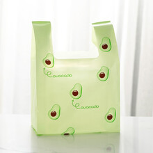 可爱水果凤梨打包塑料袋 通用网红菠萝山竹牛油果图案外卖背心袋快餐外卖袋水果店商用饰品礼品手提袋子 牛油果款 小号20*36+12cm1捆50个