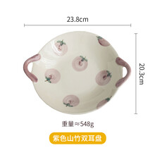 家用西餐盘简约 陶瓷双耳盘 家用餐盘水果盘子网红餐具西餐盘ins风创意圆盘 紫色山竹-双耳盘