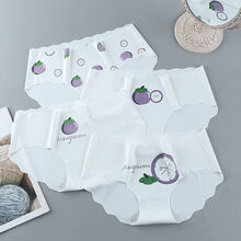 森迪宾2/3/4条 水果图案无痕冰丝内裤女档中小学生中腰菌三角内裤wll 山竹4条【颜色不重复】 M 【60-95斤】