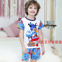 【特价】小孩子小朋友穿的短袖奥特曼衣服儿童夏装飞侠男童套装蜘蛛侠纯棉短袖恐龙变形金刚卡通动漫联名 天蓝色飞侠 90mm(0.6-1岁;身高70-80cm)