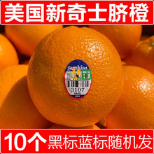 美国新奇士黑标蓝标3107脐橙大果10个 进口sunkist橙子新鲜水果 70mm(含)-75mm(不含) 4.2斤