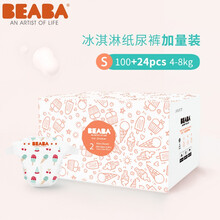 Beaba碧芭宝贝冰淇淋系列婴儿纸尿裤0.2cm超柔薄尿不湿宝宝透气纸尿片加量箱装2包装 纸尿裤S62片*2(4-8kg)