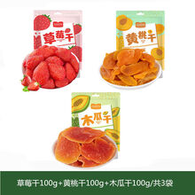 水果干混合装草莓干芒果干小零食小吃果脯休闲健康食品网红 草莓干+黄桃干+木瓜干/共3袋