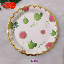 一次性餐盘一次性纸盘子水果盘蛋糕碟子生日派对聚会餐盘野餐餐具装饰布置 芭乐*9寸*8个