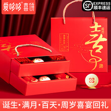 爱哆哆喜饼 满月礼盒牛宝宝诞生百天周岁伴手礼儿童十岁生日回礼双层礼盒 欢喜C69-男宝宝 套餐A