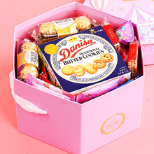 喜饼百日生日宴宝宝满月酒伴手礼品实用诞生十周岁含喜糖回礼盒装男女宝宝 女宝 粉色6角礼盒 D套餐