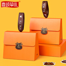 喜颂挚礼喜饼宝宝诞生满月伴手礼百日宴伴手礼喜蛋牛宝宝喜饼礼盒暖幻星橙B6 套餐A(洛森米果黑巧克力) 结婚/生日(牛款)